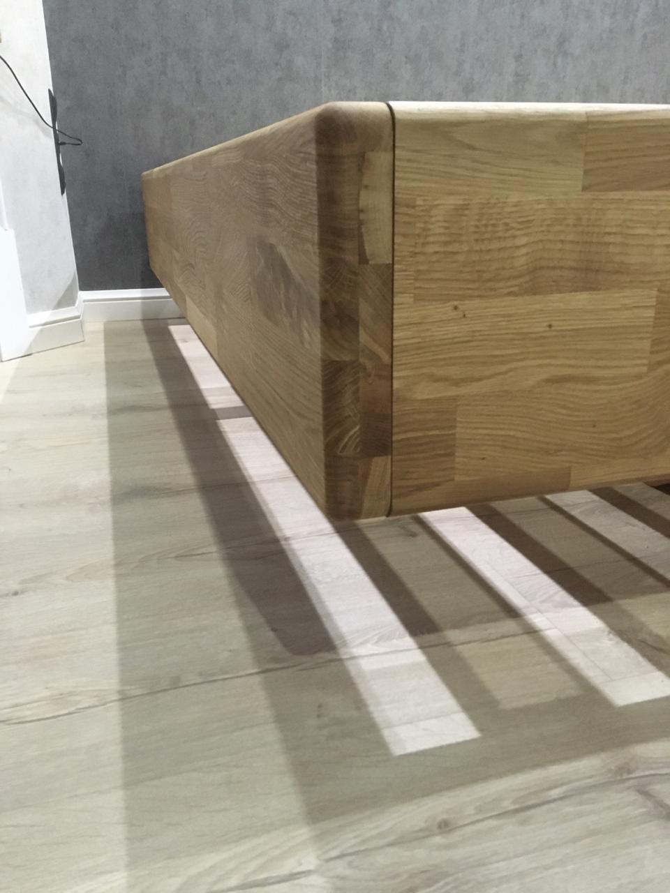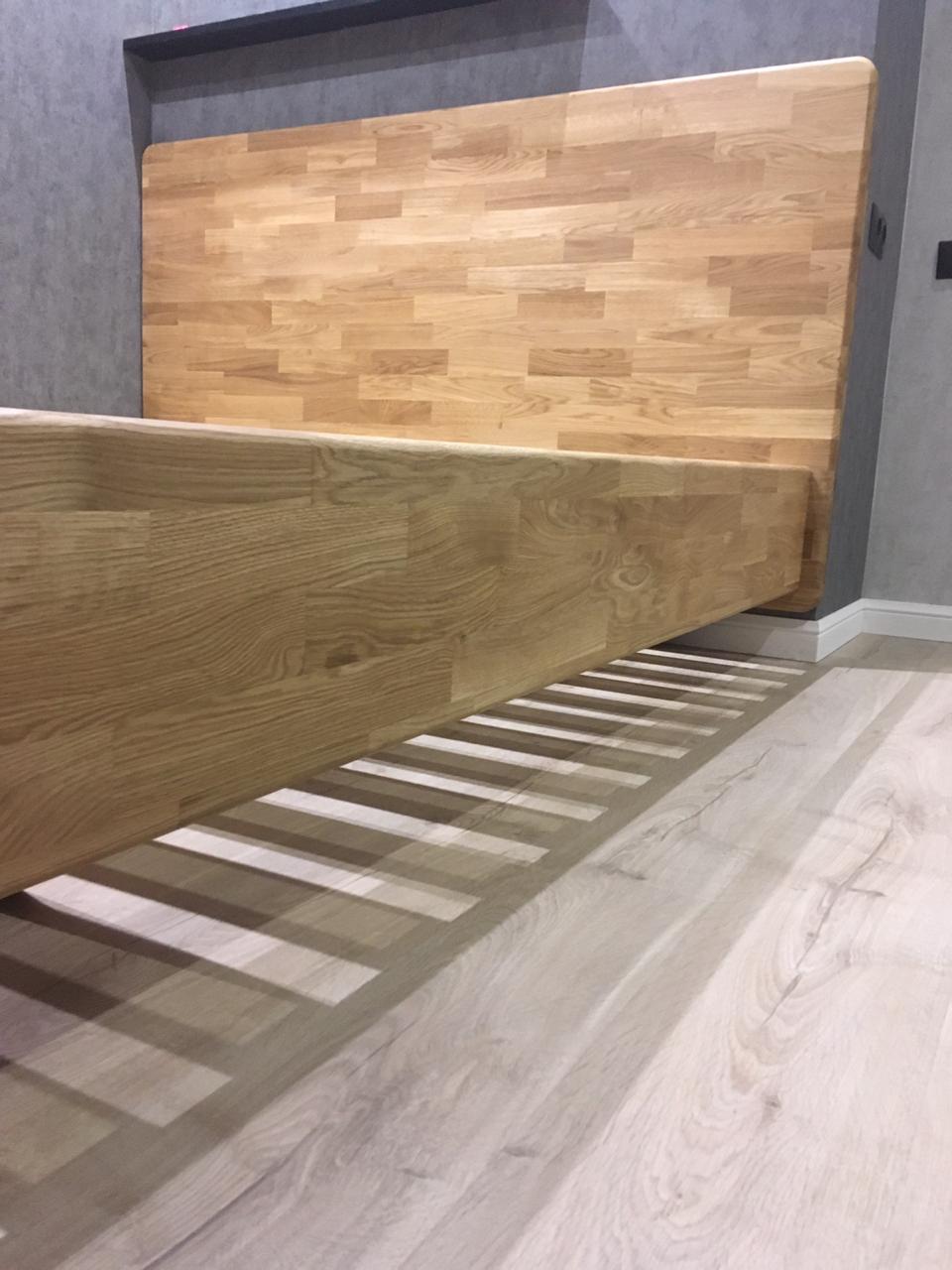 Кровать колекции «Паола» изготовлена из массива дуба толщиной 40 мм, что делает кровать массивной и основательной. Благодаря изысканной конструкции, кровать выглядит невесомой и свободно парит в комнате. Кровать изготавливается с ламельным настилом. Высота изножья кровати: 380 мм.