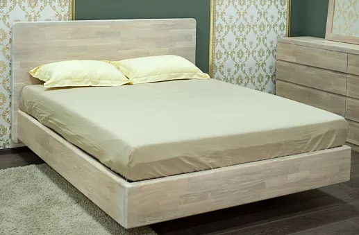 Кровать колекции «Паола» изготовлена из массива дуба толщиной 40 мм, что делает кровать массивной и основательной. Благодаря изысканной конструкции, кровать выглядит невесомой и свободно парит в комнате. Кровать изготавливается с ламельным настилом. Высота изножья кровати: 380 мм.