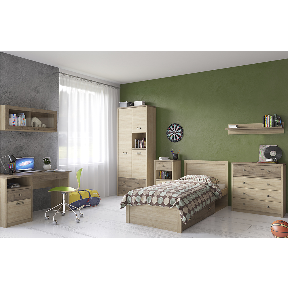 В набор мебели для детской Diesel-D1 входит: Полка навесная 1V Diesel, Стол 1D2SN/D1 Diesel, Шкаф 3D2SN/D1 Diesel, Тумба 3SN/D1 Diesel, Кровать 90/D1 Diesel, Комод 4S/D1 Diesel, Полка навесная T Diesel. Декор и стул в набор не входит, приобретается отдельно.