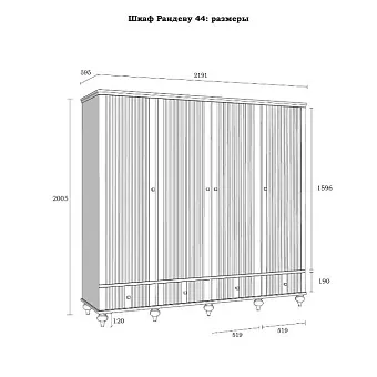 Шкаф оснащен четырьмя ящиками и четырьмя штангами. Фурнитура на ящиках с доводчиками. Высокие ножки обеспечивают оптимальный доступ при уборке.