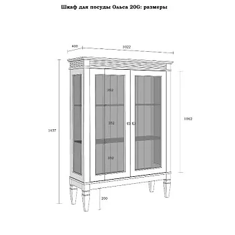 Представляем шкаф для посуды «Ольса» 20G из соснового массива. Представляет собой не высокий шкаф со стеклянными полками и распашными, стеклянными дверями. Боковины шкафа так же стеклянные.