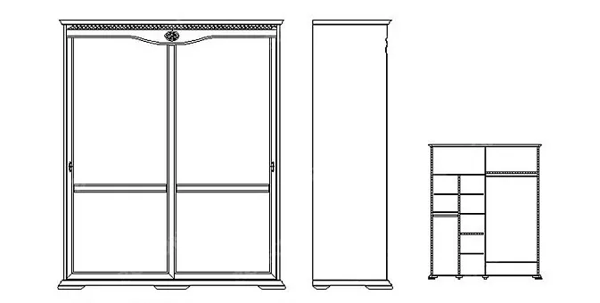 Благородная древесина дуба, резной орнамент, плавные линии брусков, фурнитура с оттенком старины, мягкая спинка кровати создают атмосферу покоя и защищённости. Стол туалетный в виде трельяжа будет находкой для тех, кто любит следить за своей внешностью, так как он позволяет оценить ее не только спереди, но и со всех сторон.