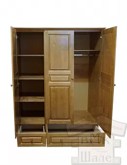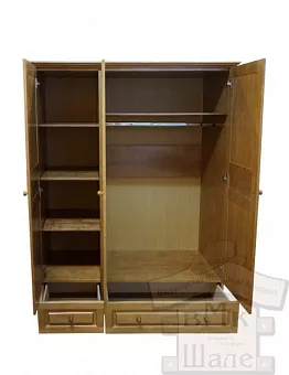 Шкаф "Прайм 3.2" имеет три распашных фасада и два выкатных ящика на роликовых направляющих. Это позволяет рационально использовать все его внутреннее пространство. Филенчатые фасады придают изделию уникальный стиль.