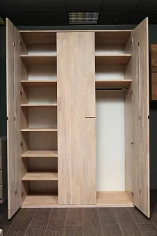 Шкаф коллекции «Паола» изготовлен из 100 % массива дуба. Шкаф представлен в 2-ух видах: двустворчатый и трехстворчатый, с возможностью выбора по внутреннему наполнению и по высоте. Шкаф оснащен удобными полками для хранения, а также со штангой с полками сверху. В изделии используется качественная фурнитура с доводчиком. На фасадах выполнена фрезеровка для открытия.