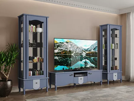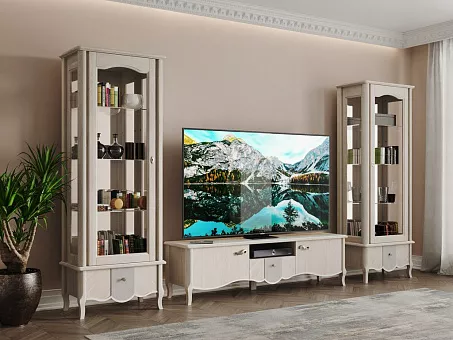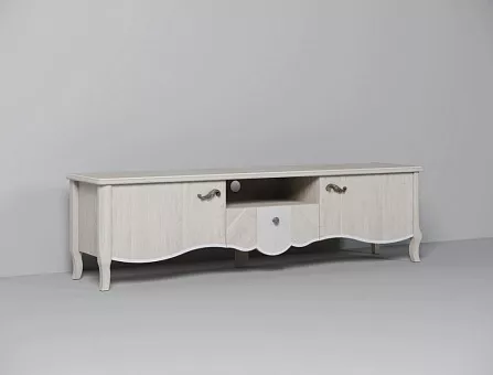 Набор выполнен с использованием шпона и массива дуба на лицевых поверхностях. Украшают набор: фигурный набор шпона, декоративные элементы с выдавленными полосками, подчёркивающими структуру древесины, волнообразные кромки нижних деталей, объёдиняющие все изделия в единую композицию. Зеркало навесное овальной формы прекрасно сочетается с таким же по конфигурации на шкафу. Внутренние поверхности деталей облицованы плёнкой с финиш-эффектом. Крышки из плиты ДСП, облицованной шпоном и бруском дуба с профильным фрезерованием по лицевым кромкам.