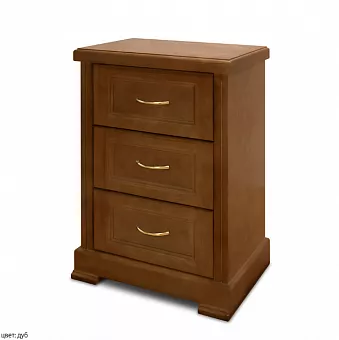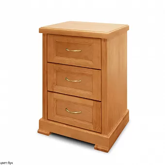 Деревянная прикроватная тумба "Классика 0.3". Тут название говорит само за себя - класическая мождель тумбы без лишних деталей. Фасады выдвижных ящиков выполняются с филёнками из берёзовой мебельной фанеры и металлическими ручками. Особенность этой тумбочки - фигурная фаска по верхнему периметру и отсутствие открытой ниши. Сочетание натуральной древесины и современных эколаков - залог экологичности и безопасности мебели для дома. Возможно изготовление нестандартных размеров.