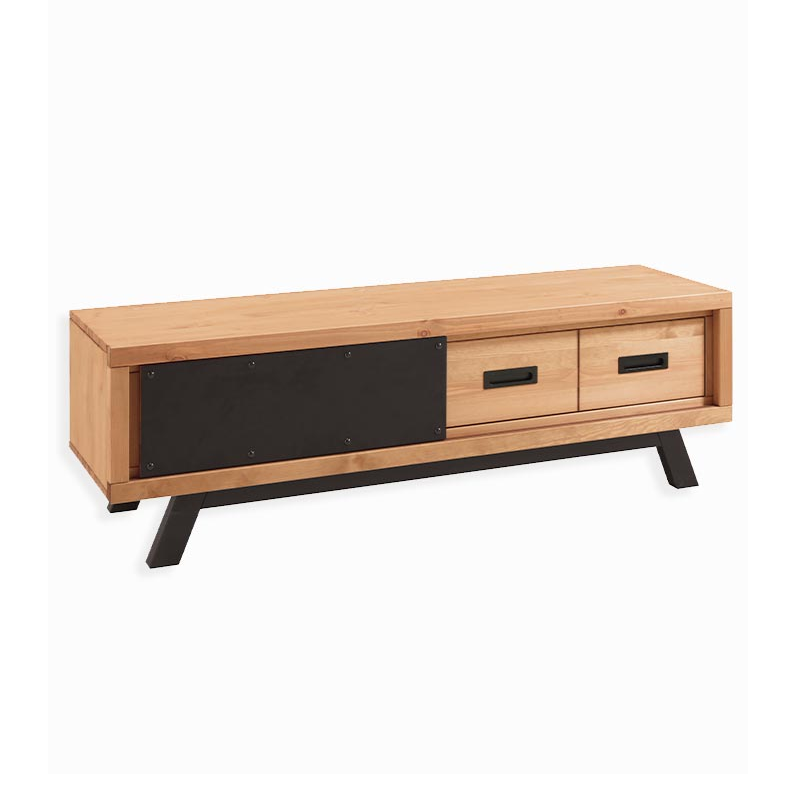 Коллекция "Оникс" в "Лофт" стиле с элементами металла. Покрытие - бейц цвета антик и масло. Ножки из дерева покрыты черной эмалью и лаком. Накладные элементы на сдвижных дверках из металла. Ручки врезные черные из металла. Tумба ТВ 180 Оникс: 1 сдвижная дверца на роликах, один видвижной ящик на шариковых направляющих полного выката.