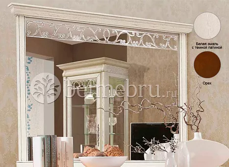Отделка: варианты цвета — «орех» , «белая эмаль + патина тёмная», «венге+патина серебряная», лак – на водной основе. Вес изделия 36 кг.
