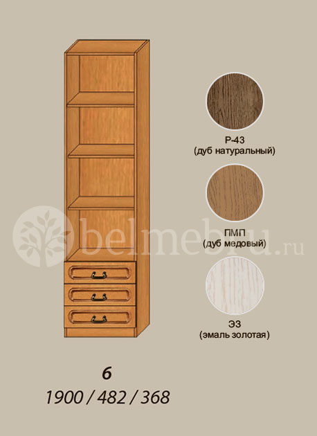 Коллекция производится в цветах "Медовый дуб" (ПМП), "Натуральный дуб" (Р-43) и "Эмаль золотая" (ЭЗ)*