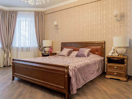 Благородная древесина дуба, резной орнамент, плавные линии брусков, фурнитура с оттенком старины, мягкая спинка кровати создают атмосферу покоя и защищённости. Стол туалетный в виде трельяжа будет находкой для тех, кто любит следить за своей внешностью, так как он позволяет оценить ее не только спереди, но и со всех сторон.