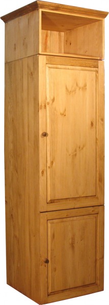 Изделие выполнено полностью из массива сосны. Настоящий прованс в вашем доме. Две двери без внутренней перегородки. В нижней части шкафа есть отверстия для ножек холодильника. Фактически, тяжелый холодильник стоит на полу, а шкаф только закрывает его со всех сторон. Задняя стенка закрыта не полностью. Это позволяет воздуху свободно циркулировать внутри шкафа.