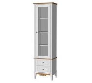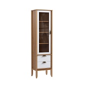 Шкаф для посуды Бридж узкий с 1-ой стеклянной дверью и 2-мя ящиками браун/белый лак