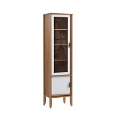 Шкаф для посуды Бридж узкий с 1-ой стеклянной дверью и 1 глухой дверью браун/белый лак