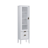 Шкаф для посуды Бридж узкий с 1-ой стеклянной дверью и 2-мя ящиками белый лак