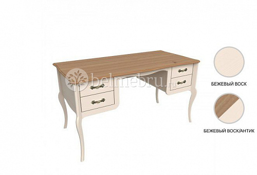 Стол письменный Лебо с ящиками, ящики на направляющих с доводчиками. Покрытие - укрывистый бежевый воск или бежевый воск/антик столешница цвета антик. Структура древесины почти не просматривается.