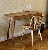 Туалетный стол имеет три выдвижных ящика и откидное зеркало. Он легко впишется в любую спальню в скандинавском стиле. Используется 100% массив дуба. Покрытие интерьерными маслами от компании Хенкель. 100% ЭКО отделка, масла не выделяют никаких токсичных частиц. Гарантия защиты и долговечности древесины, сохранение ее текстуры, внешнего вида и естественности. Каркас-массив дуб, фасад- массив дуб. Задняя стенка, дно ящиков - фанера, облиц. шпоном дуб.